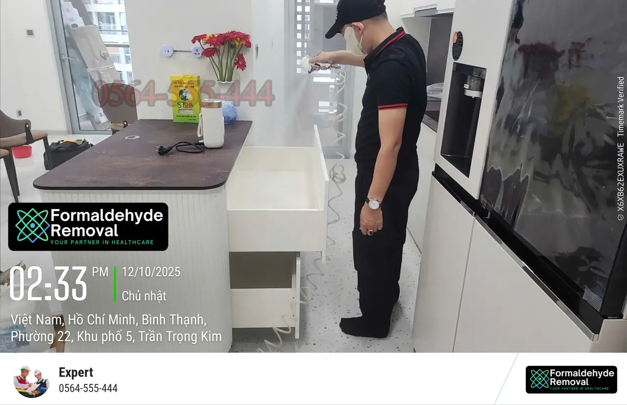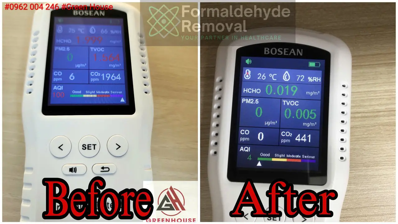 Trong quá trình thao tác, các kỹ thuật viên đảm bảo công tác an toàn, tránh phát tán khí độc ra môi trường xung quanh và đảm bảo các vật dụng nội thất không bị ảnh hưởng. Sau khi thực hiện, khách hàng sẽ được kiểm tra lại bằng thiết bị đo khí để xác nhận mức độ Formaldehyde đã giảm tới tiêu chuẩn an toàn. Quy trình này không chỉ nhanh chóng, hiệu quả mà còn giúp khách hàng yên tâm về chất lượng dịch vụ và tính an toàn của không gian sống và làm việc.